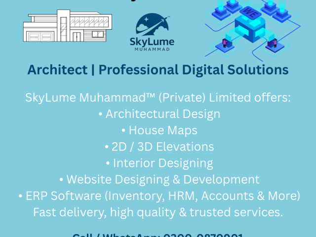 SkyLume Muhammad™ (Private) Limited provides premium Architectural Design (PCATP-Certified Female Architect), Website Designing & Development, and ERP Software Solutions in Gujranwala.