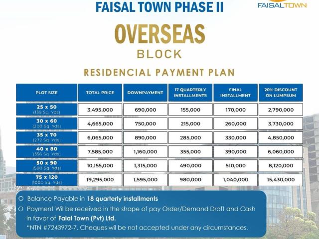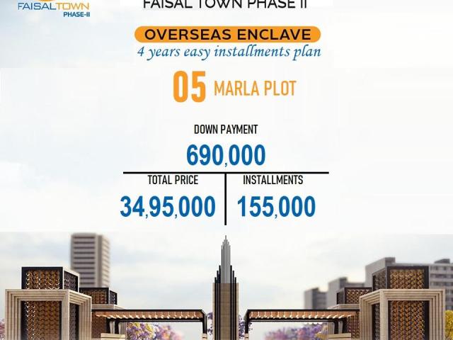 5, 8, 10 marla and 1 kanal residential plots in Faisal Town Overseas Block on 4.5 year easy installments.