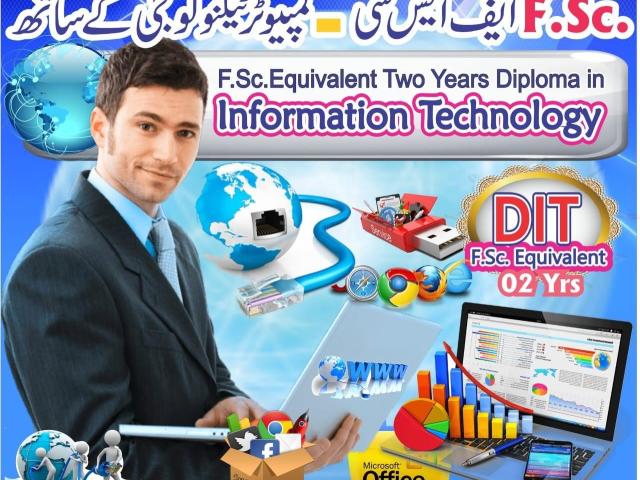 The 2-Year Diploma in Information Technology (DIT) offered in Barakahu, Islamabad is a government-recognized technical qualification equivalent to FSc (Intermediate). It provides students with foundational and advanced IT knowledge, including computer programming, networking, database systems, and web development.